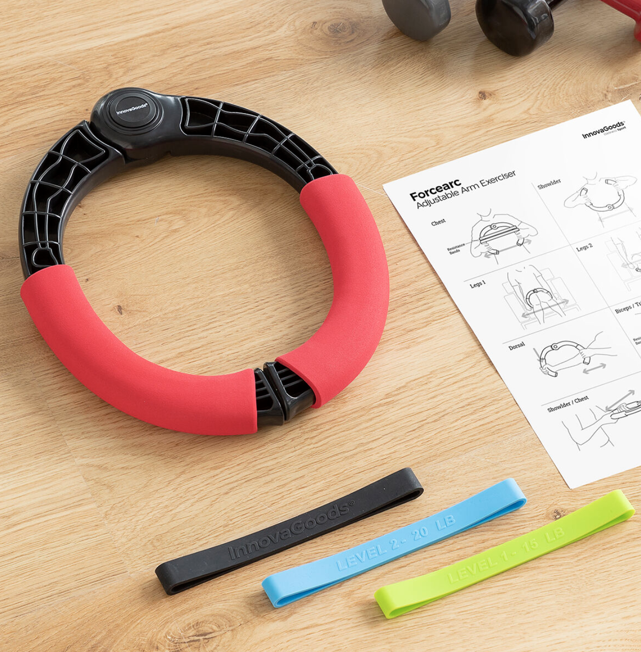 Ejercitador de Brazos Regulable con Resistencia y Guía de Ejercicios Forcearc InnovaGoods
